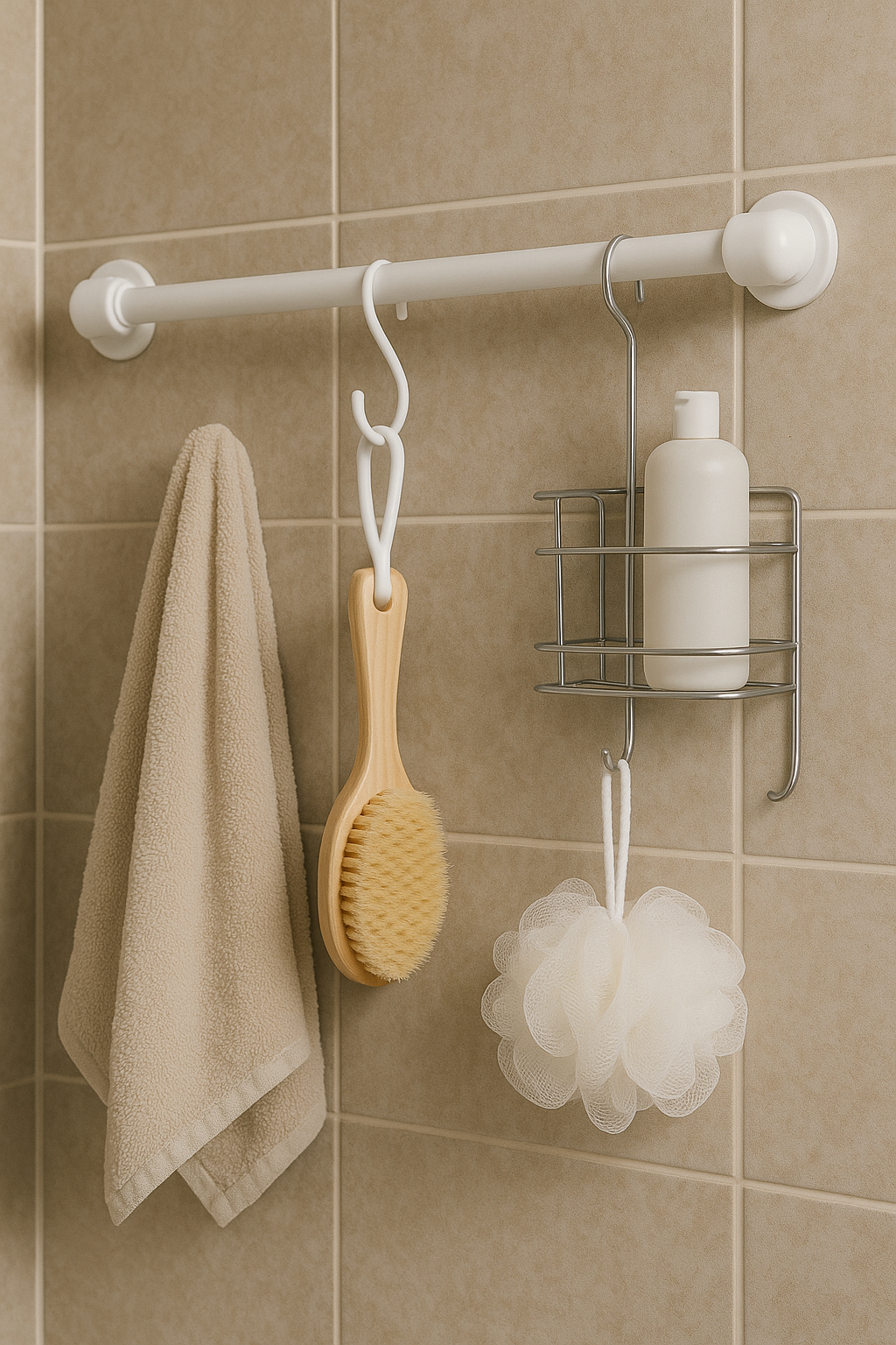 4. 무타공 행거봉 – 옷걸이, 수건걸이, 주방툴까지 전천후 아이템