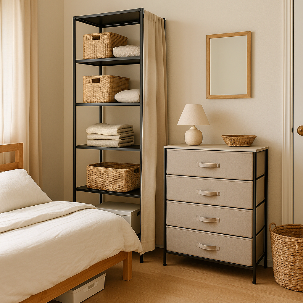 예를 들어, 3단 철제선반 + 패브릭 서랍 조합은 가볍고 이사도 간편해서 진짜 꿀템이에요.
